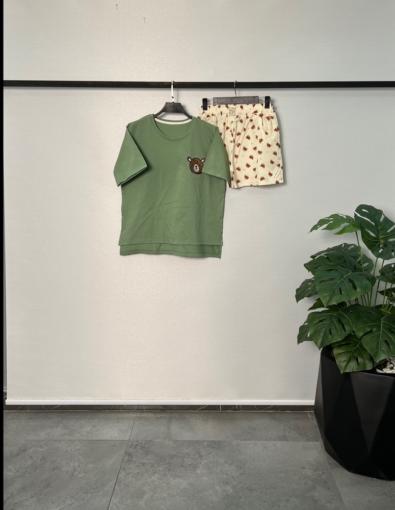 ست تیشرت شلوار عروسکی خرس کرم