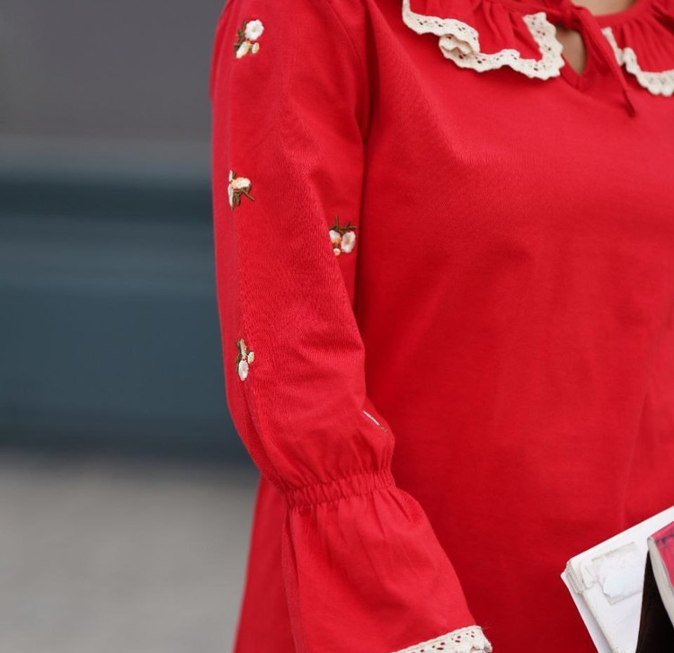 بلوز یقه و آستین گیپوری گلدوزی شده با جنس نخ پنبه. قد ۷۲ سانتیمتر و دورسینه ۱۱۲.