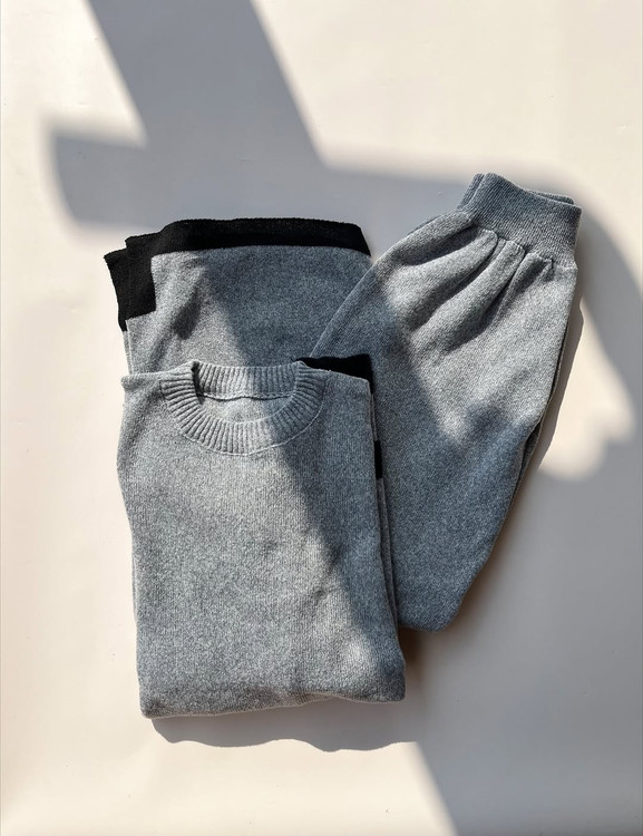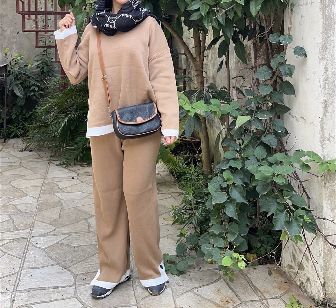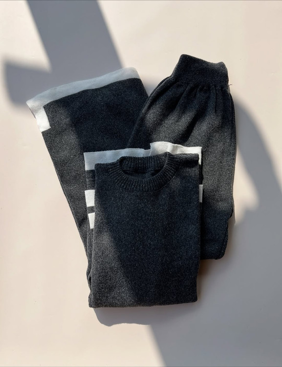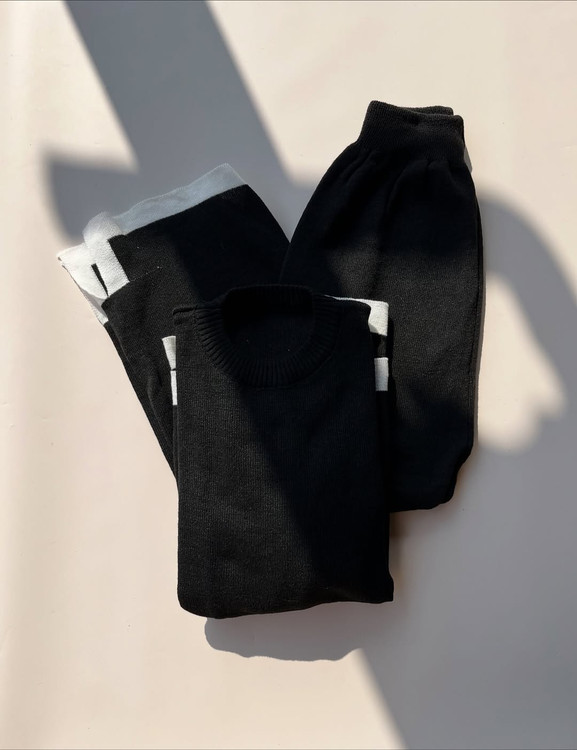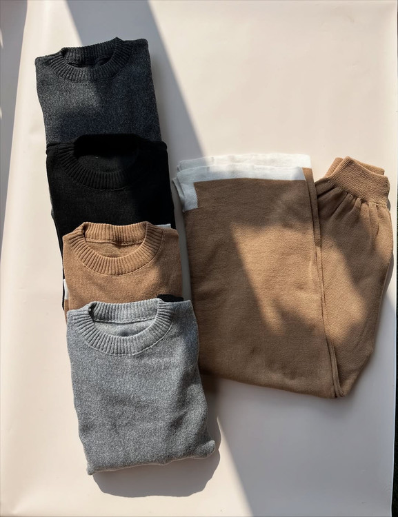 ست بافت نرم، راحت و شیک فری سایز مناسب ۳۶ تا ۴۶. قد لباس از جلو: ۶۸ و از پشت: ۷۷ و قد شلوار ۱۰۰.