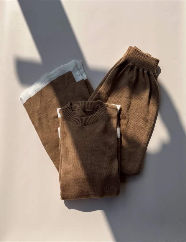 ست بافت نرم، راحت و شیک فری سایز مناسب ۳۶ تا ۴۶. قد لباس از جلو: ۶۸ و از پشت: ۷۷ و قد شلوار ۱۰۰.
