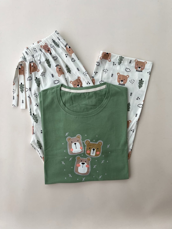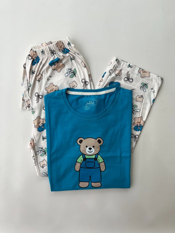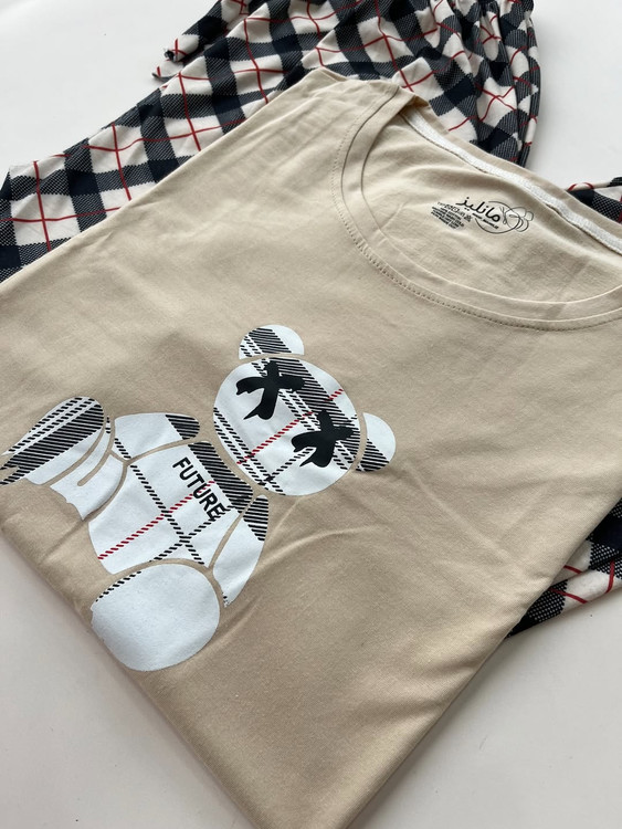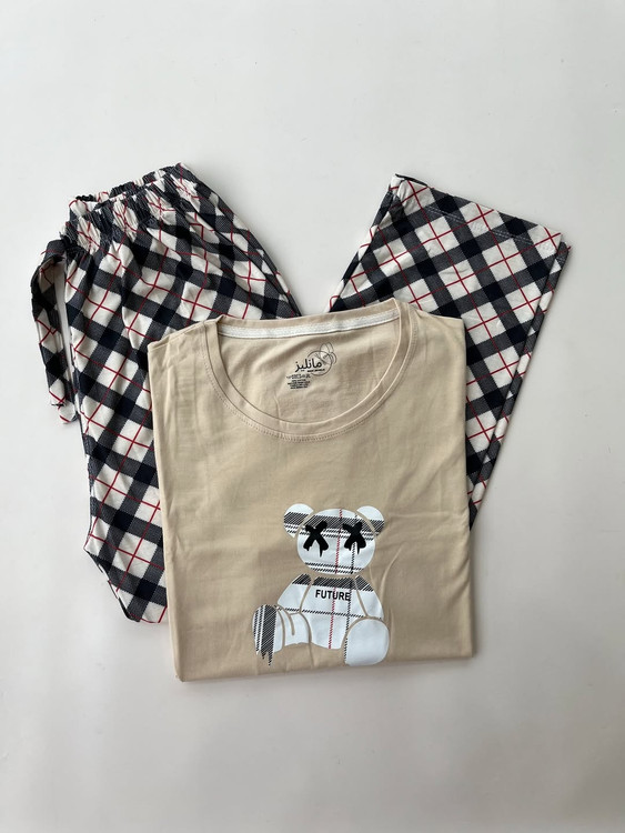 ست تیشرت و شلوار عروسکی با طرحای جذاب، جنس تیشرت: نخ پنبه، شلوار اسپان (بدون زانو انداختن و دوندون شدن)، فری سایز (۳۸ تا ۴۶)