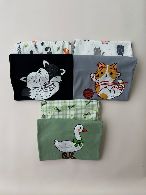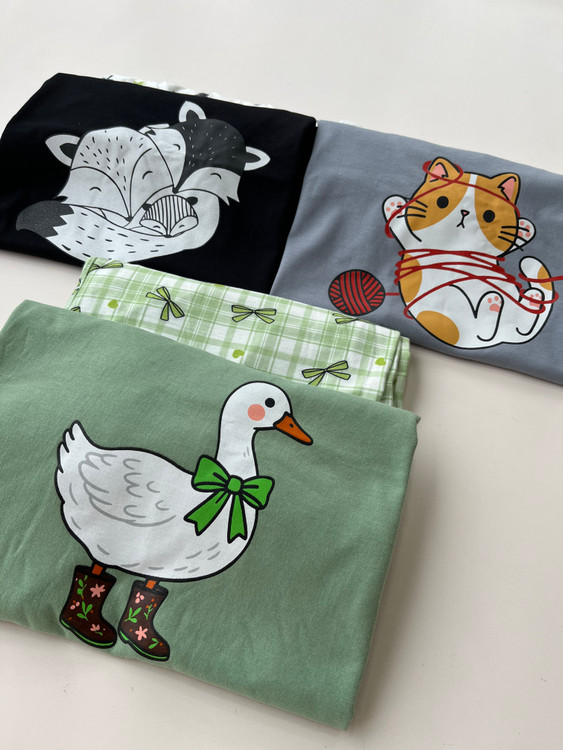 ست تیشرت شلوار عروسکی با طرحای دلبرش. جنس تیشرت: نخ پنبه شلوار اسپان (بدون زانو انداختن و دوندون شدن) فری سایز( ۳۸ تا ۴۶)