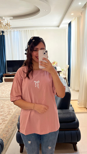 تیشرت باکسی زنانه طرح پاپیون فری سایز