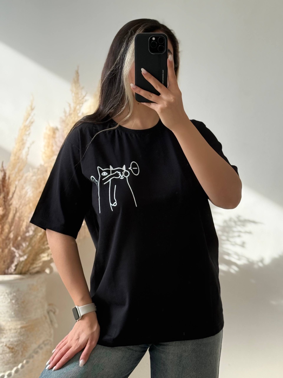 ناموجودتیشرت باکسی زنانه طرح گربه فری سایز